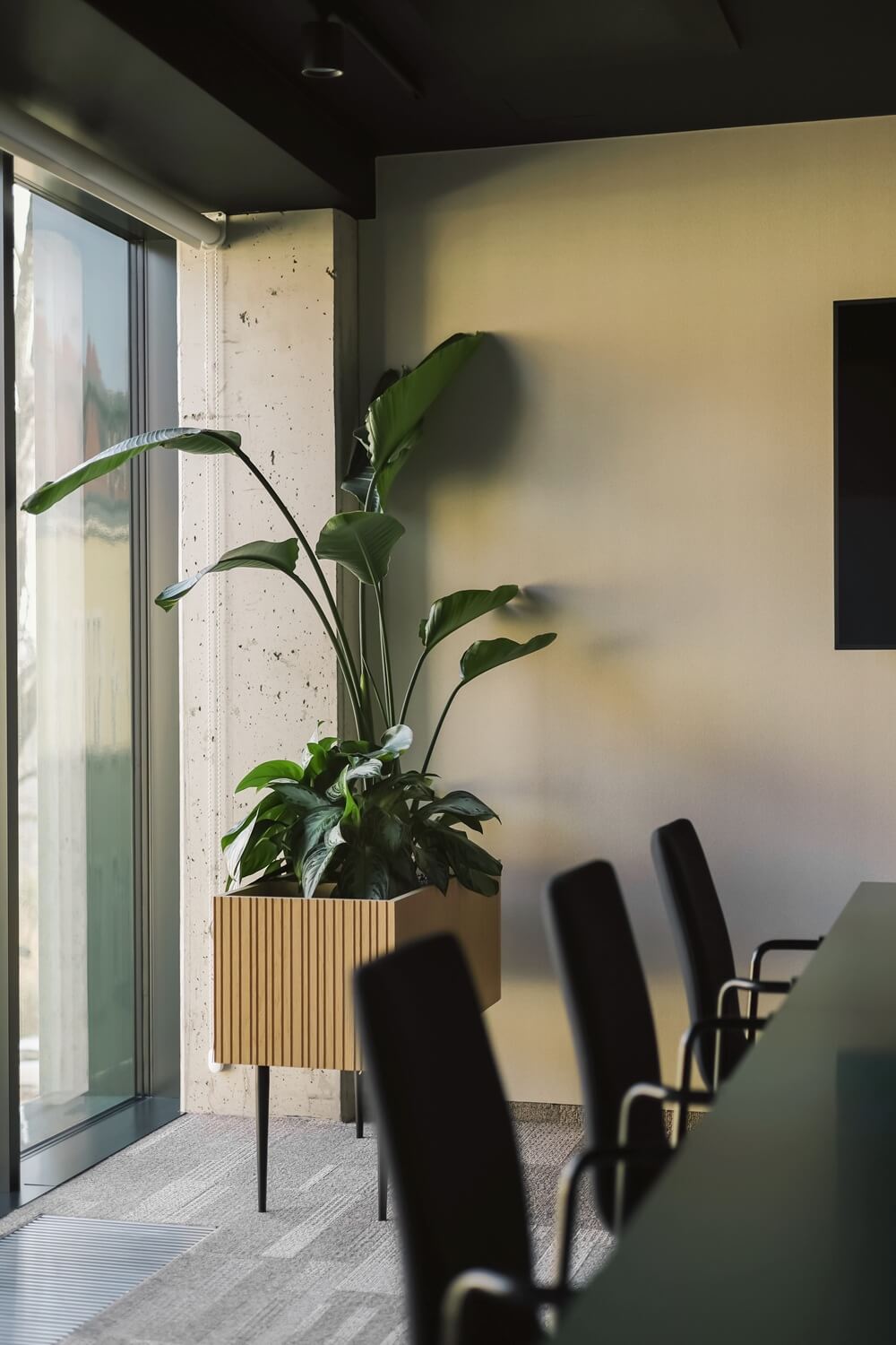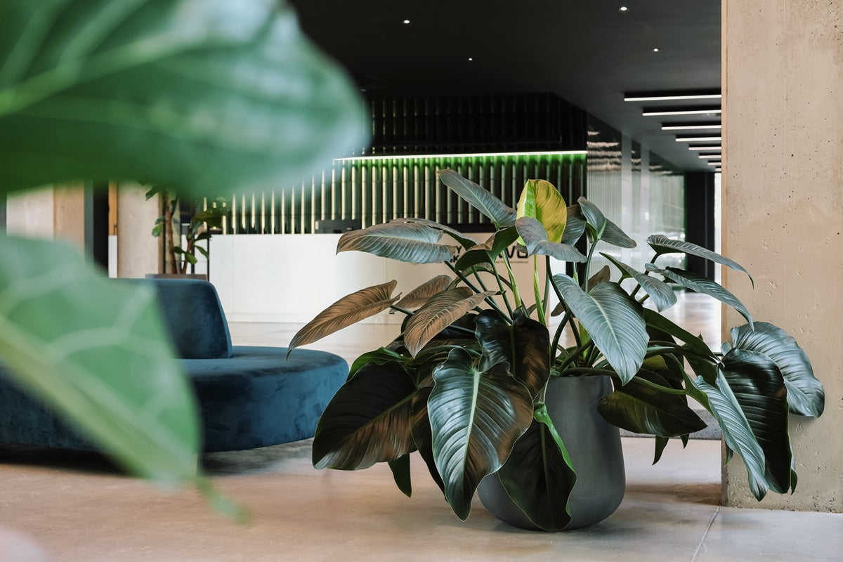 Aranżacja objęła wszystkie kluczowe przestrzenie wspólne budynku - sale konferencyjne, kuchnie, lobby oraz strefy open space. W lobby postawiliśmy na większe, wolnostojące okazy, które witają gości i tworzą reprezentacyjny charakter przestrzeni. Sale konferencyjne i kuchnie zyskały bardziej kameralne kompozycje, sprzyjające zarówno koncentracji, jak i relaksowi w przerwach od pracy. Najzieleńszym punktem aranżacji stało się trzecie piętro, gdzie stworzyliśmy bujną, ale funkcjonalną przestrzeń w strefie open space. Znajdujące się tutaj filodendrony, aglaonemy, strelicje i monstery to codzienni uczestnicy zarówno formalnych, jak i nieformalnych spotkań.